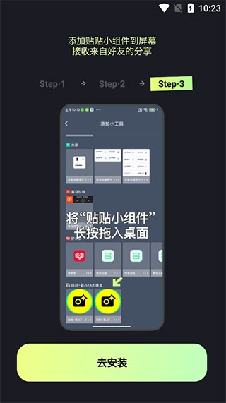 首先,你需要将贴贴小组件添加到桌面,接收好友的分享。