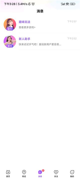 5. 点击“消息”,你会看到来自新人助手的通知,之后与主播的聊天记录也能在这里找到。