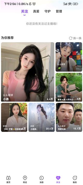 7. 选择“关注”,你可以查看你关注的主播,并加入她们的粉丝团,实时接收她们的动态。